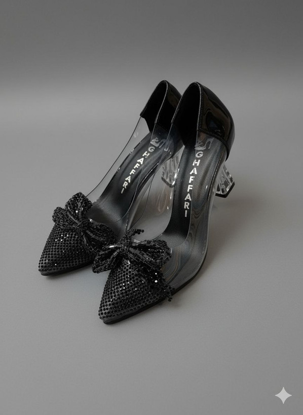 کفش مجلسی زنانه شیشه‌ای کد ۴۲۶- رویه طلقی شفاف پاشنه ۴ سانت دافوس